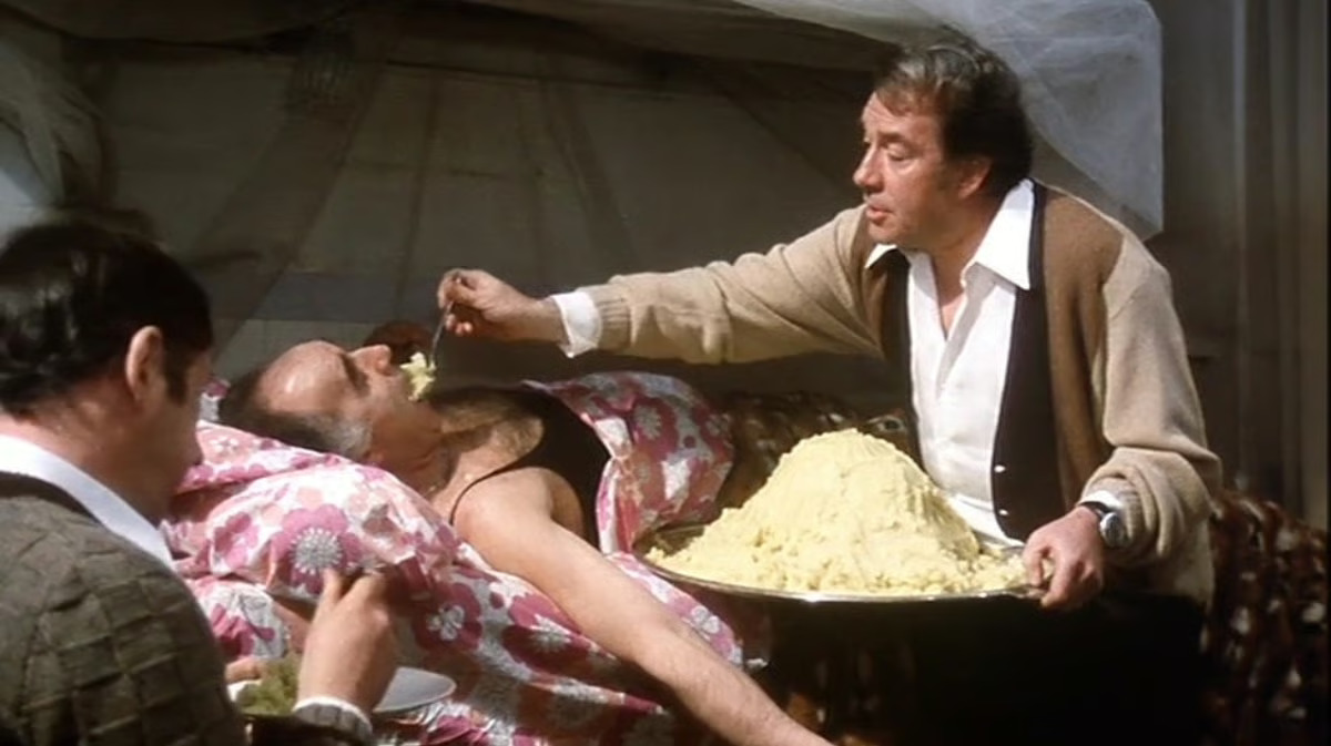 Dette er en film (som sjokkerte vannet av folk da den ble vist i Cannes) om nytelse og dekadanse tatt helt ut i det ekstreme, en vill, sort og surrealistisk komedie. Med herrene Mastroianni, Tognazzi, Piccoli og Noiret i hovedrollene, blir det hele svært så severdig!
